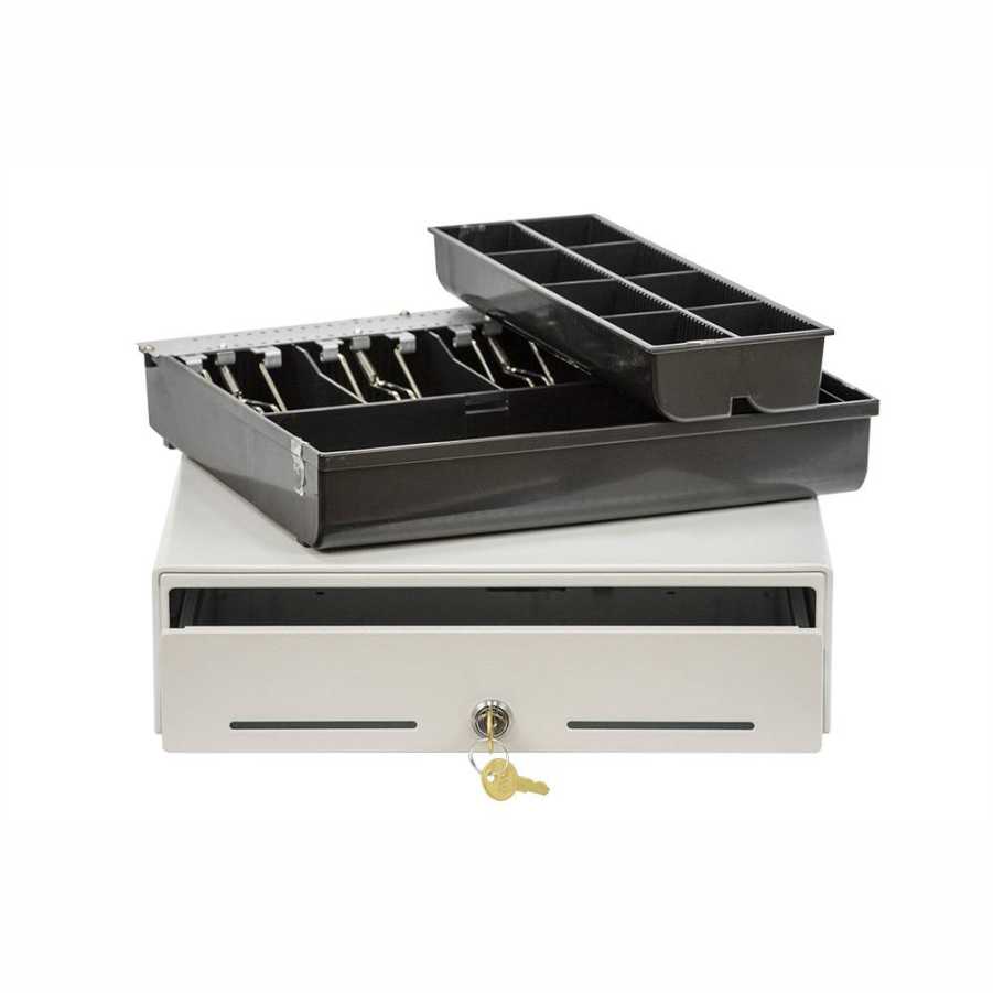 Наличие двух отделений для чеков и счетов обеспечит сохранность финансовых документов и порядок на рабочем месте кассира. Механизм денежного ящика рассчитан на 1 миллион циклов.